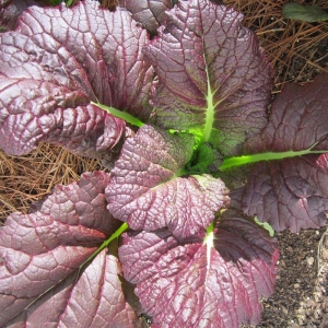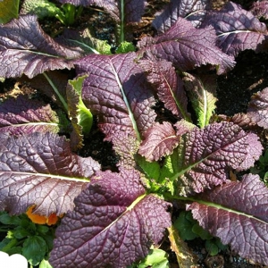 Cải cay khổng lồ đỏ là giống cải ấn tượng với kích thước lá cực lớn, màu đỏ tím đặc trưng và hương vị cay nồng đặc biệt. Đây là giống rau vừa mang giá trị dinh dưỡng cao vừa tạo điểm nhấn lạ mắt cho khu vườn.